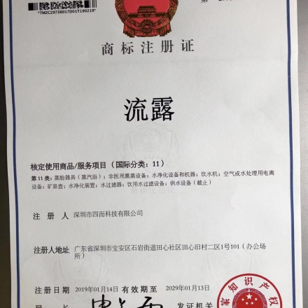 流露商標(biāo)注冊證書
